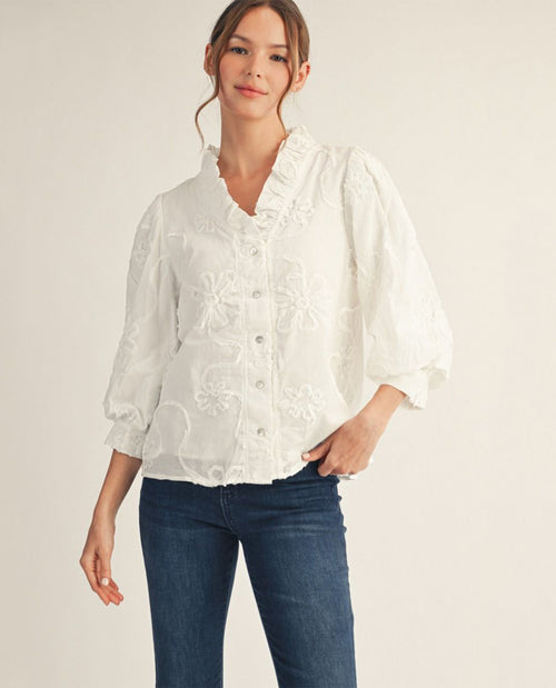 Jodifl Solid Crinkle Top With Puff Sleeves