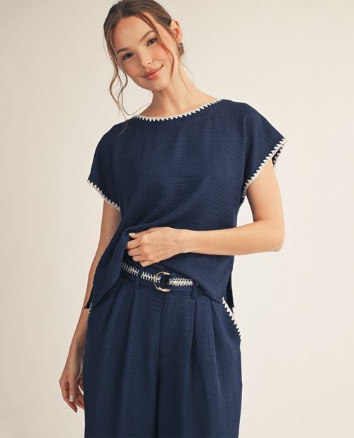 Jodifl Solid Notch Neck Top With Stripe Contrast Red