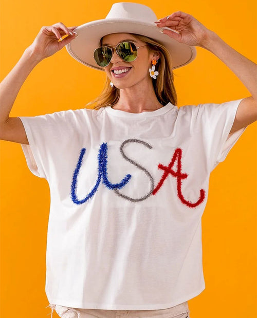 Bibi Mixed Stripe Top with Bows Sequin Patches