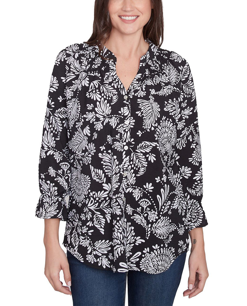 Ruby Road Monochrome Moment 3/4 Floral Woven Top