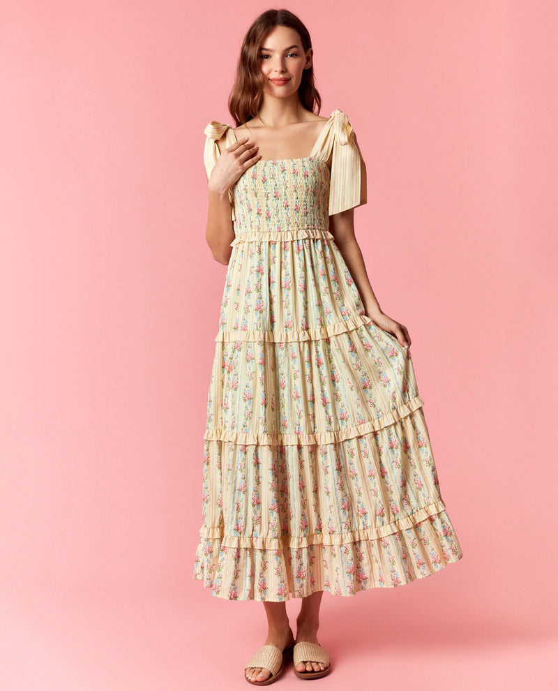 Peach Love Floral Tiered Dress Pink/Mint
