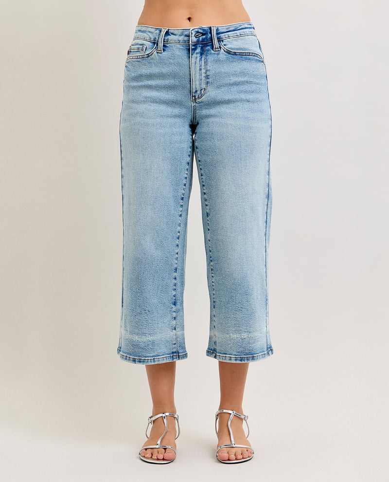 Judy Blue Mr Wide Crop Jeans Medium Wash
