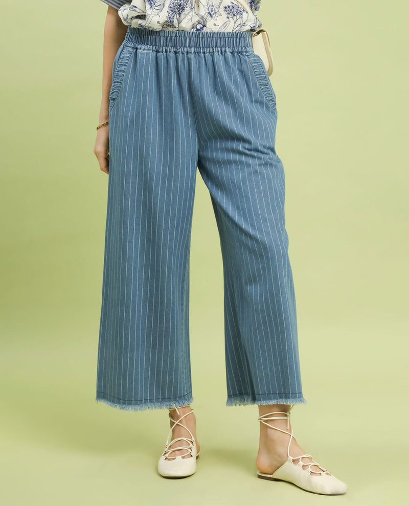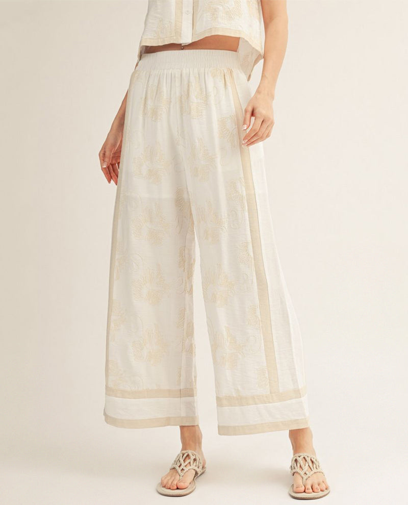 Jodifl Print Soft Crop Pant With Solid Trim Off White