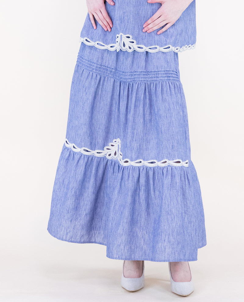 Original USA Eyelet Embroidered Maxi Skirt Denim
