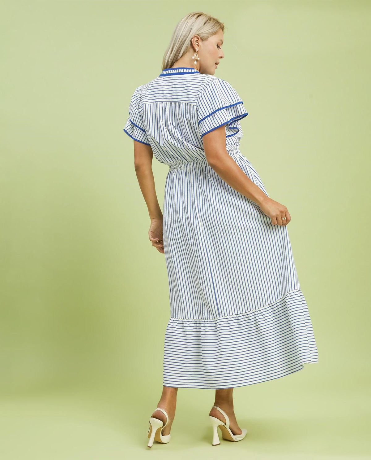 Umgee Striped Flutter Sleeve Midi Dress Ocean