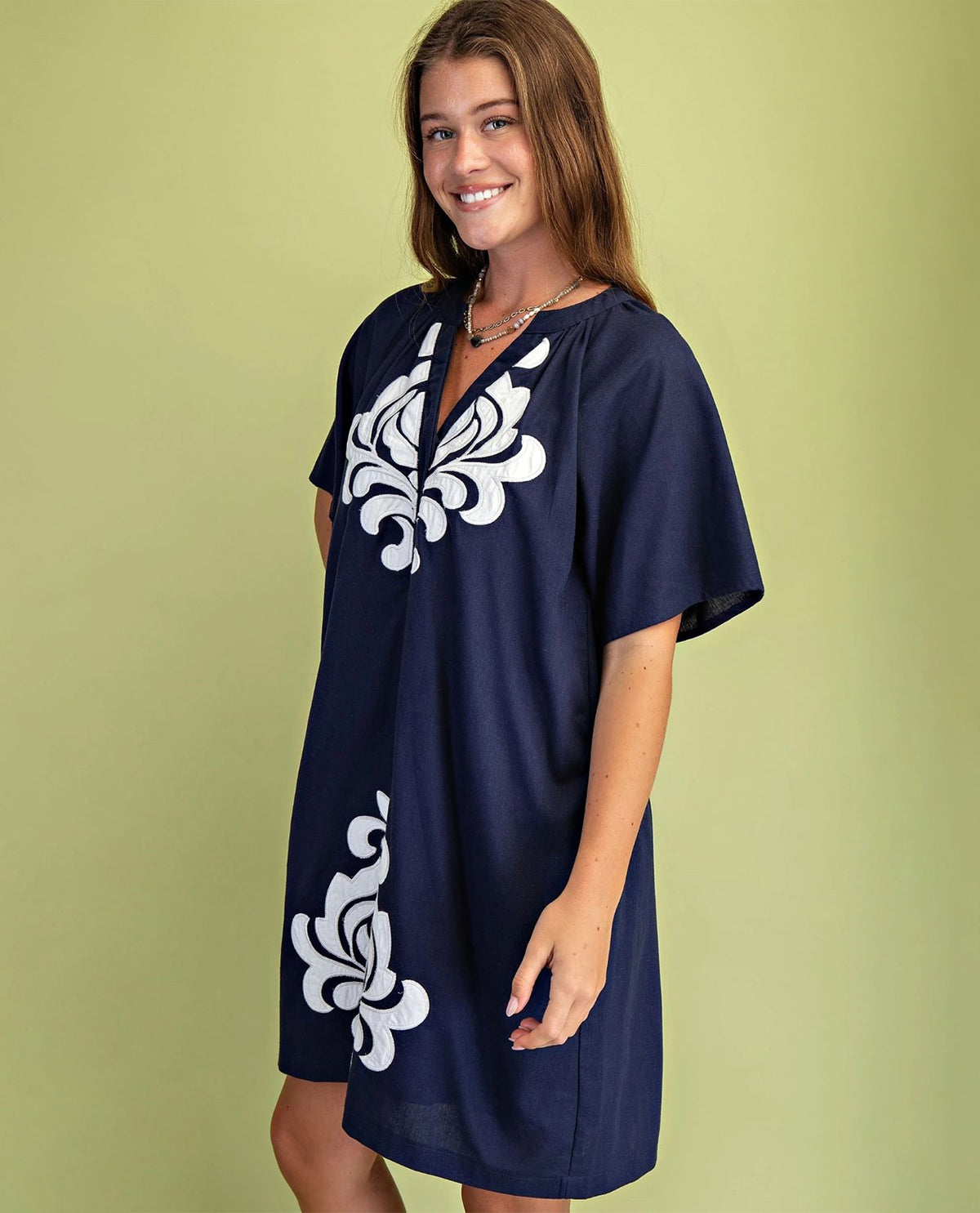 Step into breezy charm with the Gigio Linen Dress featuring delicate embroidery. Crafted from breathable linen, it keeps you cool while the intricate stitching adds a whimsical touch. Perfect for sunny afternoons and spontaneous adventures, this dress blends effortless style with playful elegance. Get ready to turn heads and twirl with joy wherever you go!