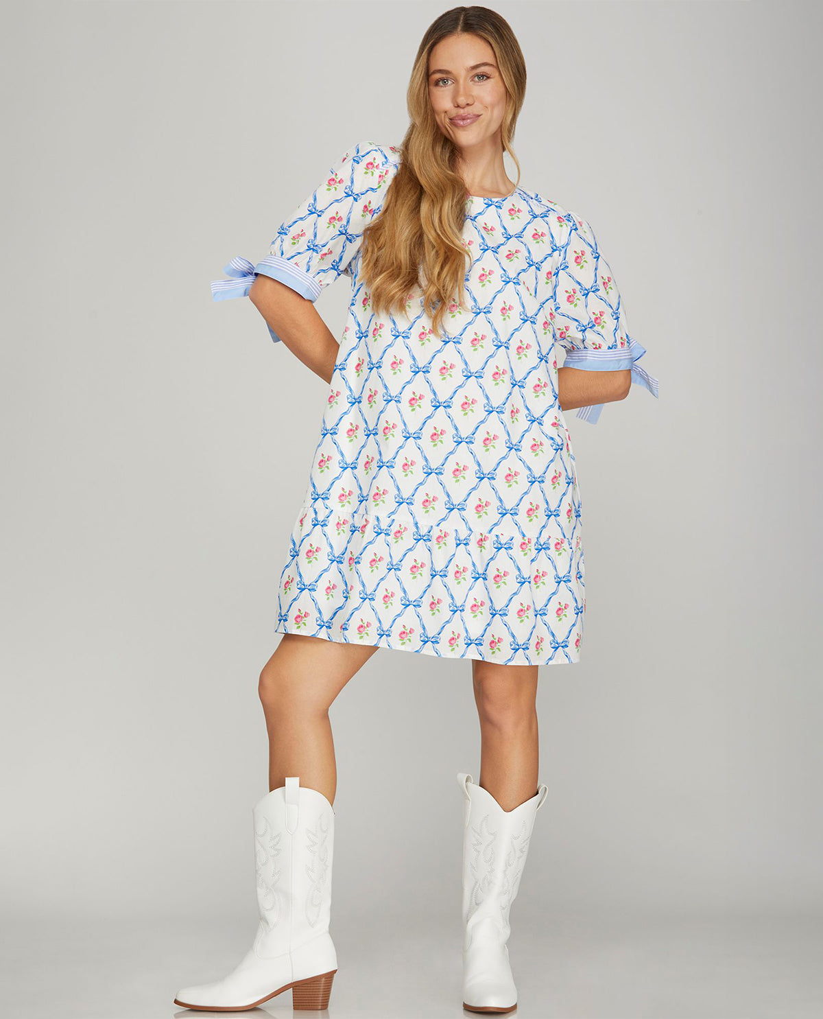 Turn heads in this charming She and Sky print dress, where playful patterns meet feminine details. The tie sleeves add a flirty touch that frames your shoulders beautifully, while the print brings instant personality to your everyday look. Perfect for those days when you want to feel effortlessly chic without trying too hard. Dress it up with heels or keep it casual with sneakers—this versatile piece does it all with a wink and a smile.