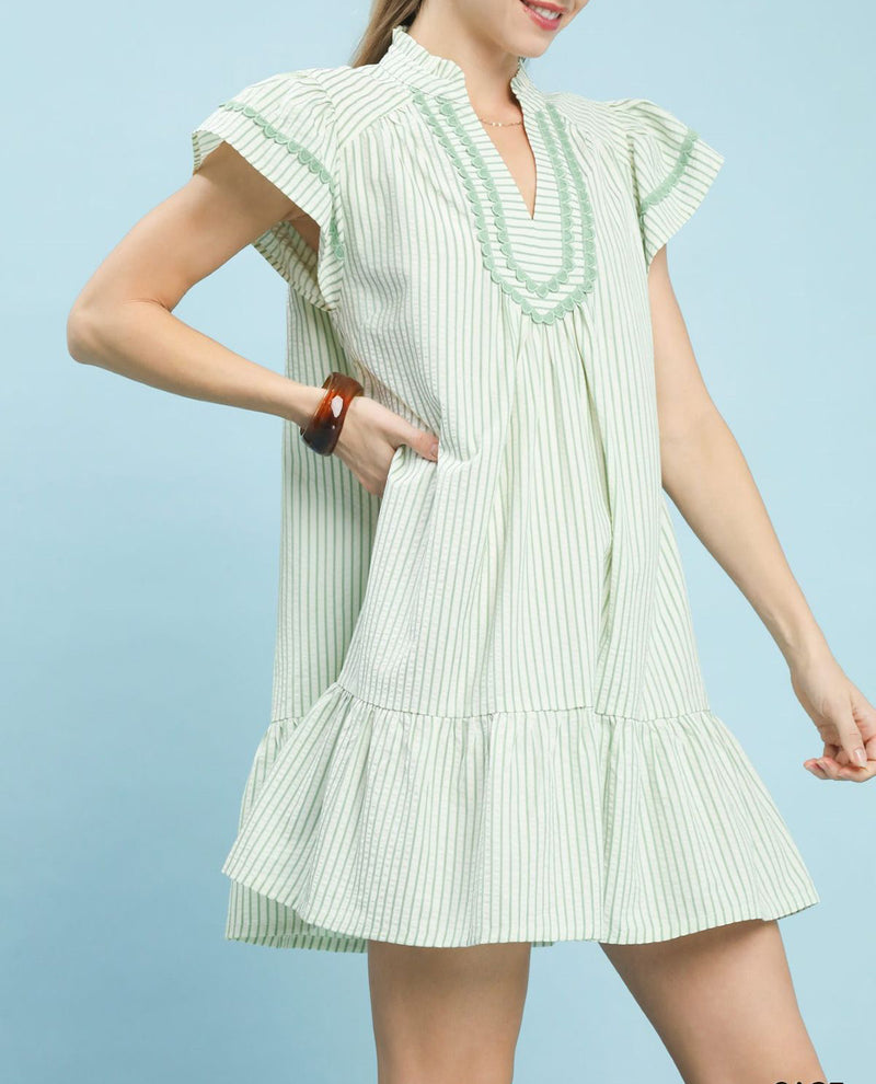 Umgee Seersucker Stripe Dress Sky