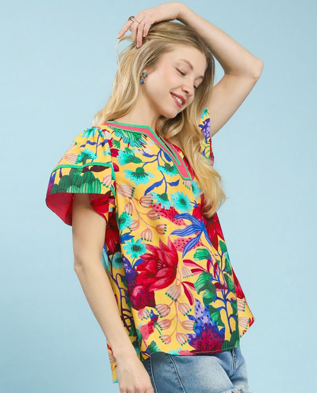 Brighten your wardrobe with this cheerful multicolor floral print top! Perfect for casual outings or weekend adventures, this short sleeve style keeps you cool and comfortable while the vibrant botanical design adds instant personality to any look. Mix and match with your favorite bottoms for endless styling possibilities. Whether you're heading to brunch or running errands, this versatile piece brings a pop of color and joy to your everyday rotation.