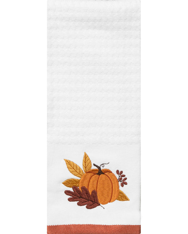Embroidered Diamond Pumpkin Leaf Kitchen Towel