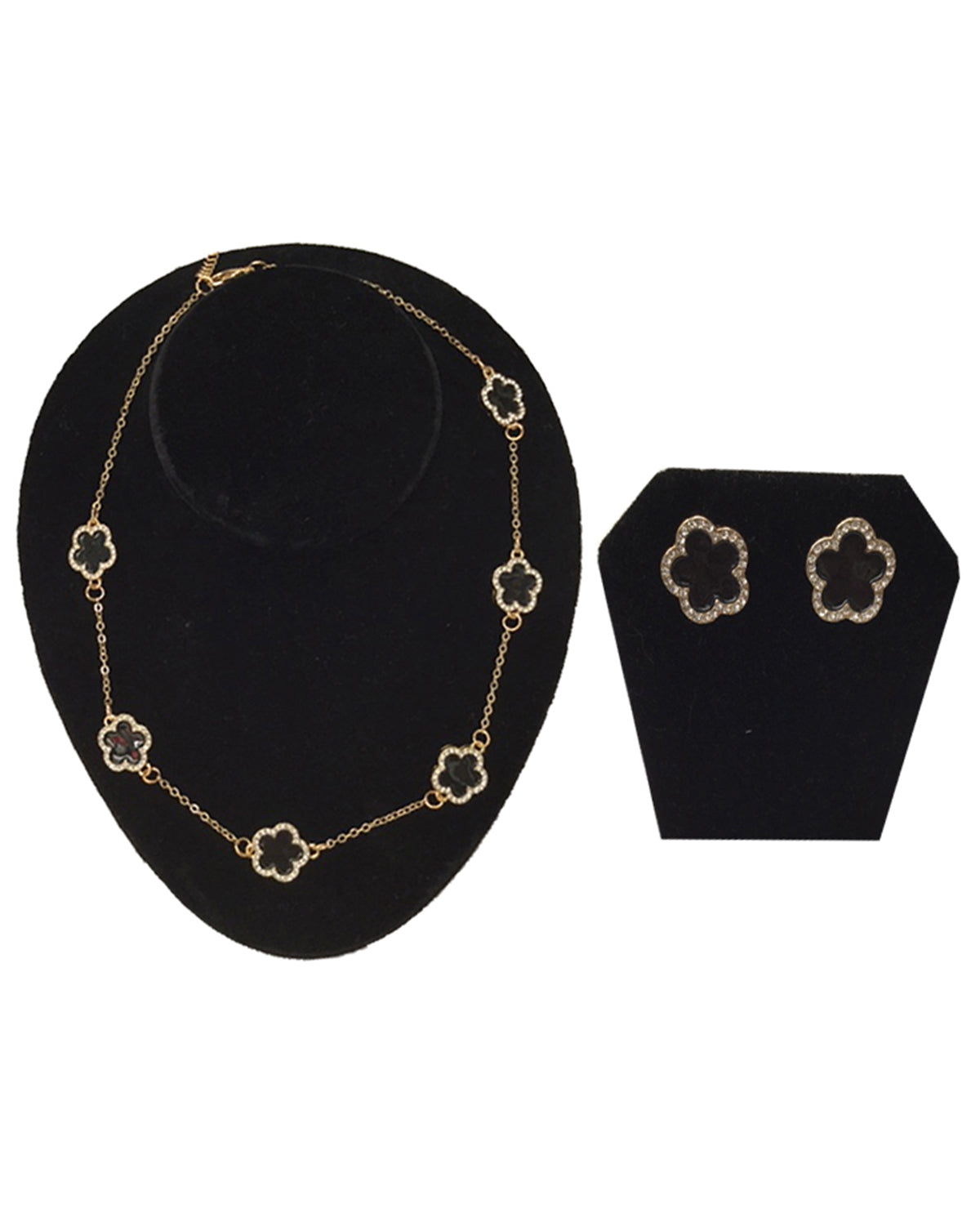 Necklace Earring Set With Acrylic Clovers Gold