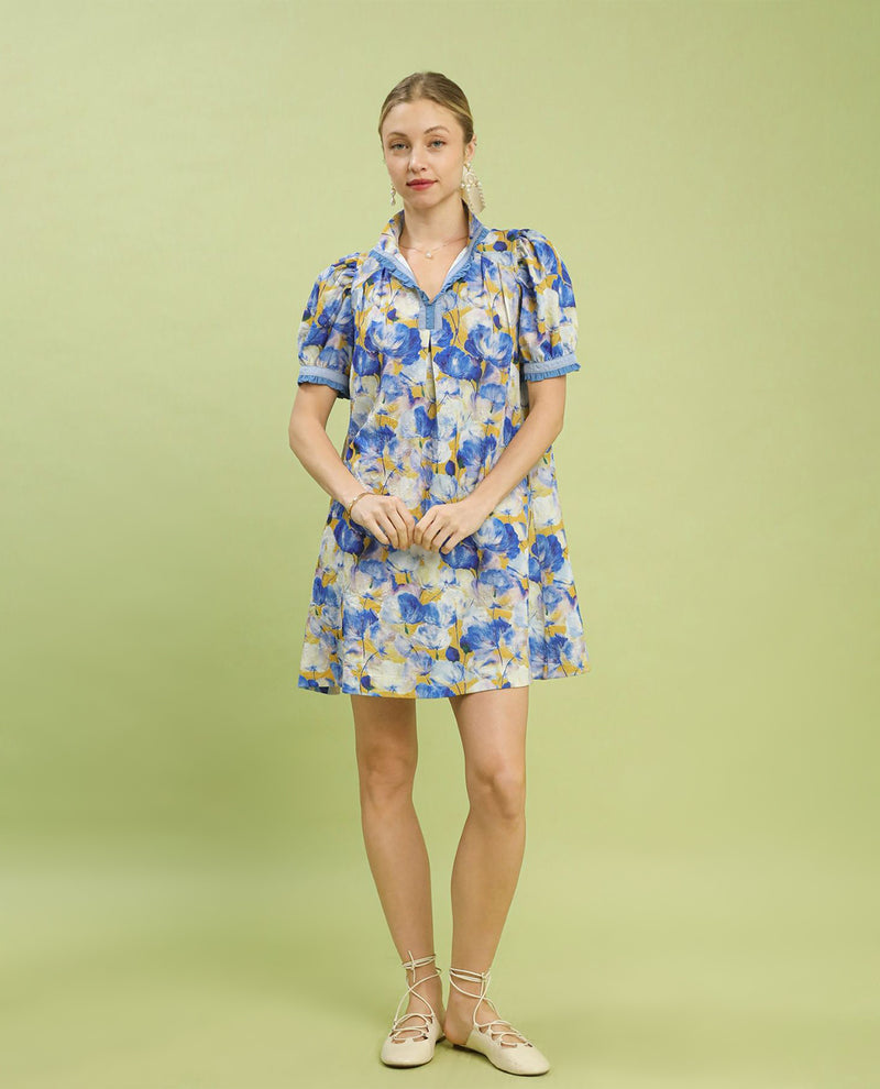 Umgee Mix Floral Tiered Midi Dress with Ruffle Sleeves
