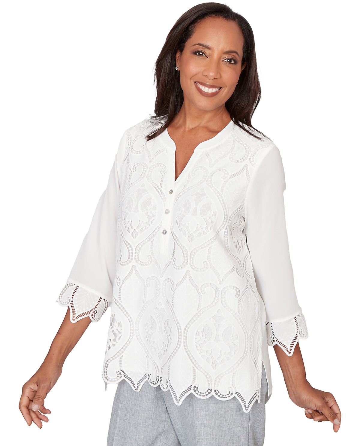 Alfred Dunner Al Fresco Cutout Lace Front Blouse
