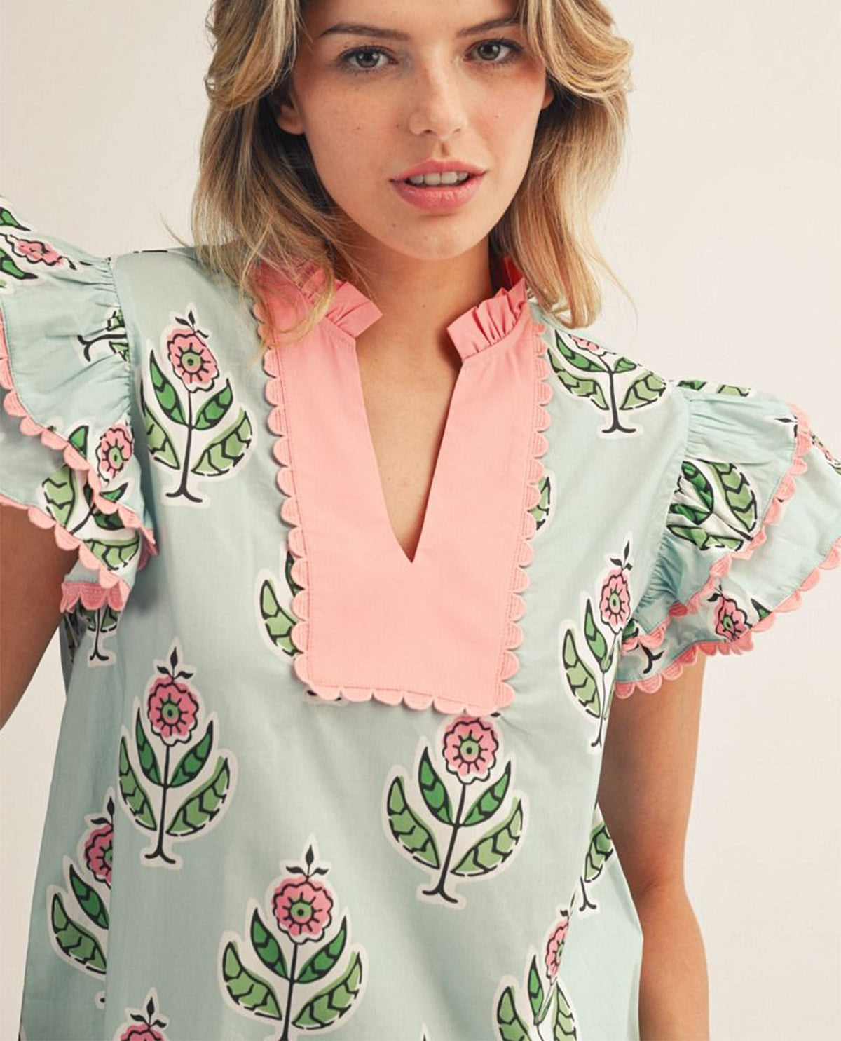 Jodifl Flutter Sleeve Top With Solid Trim Mint