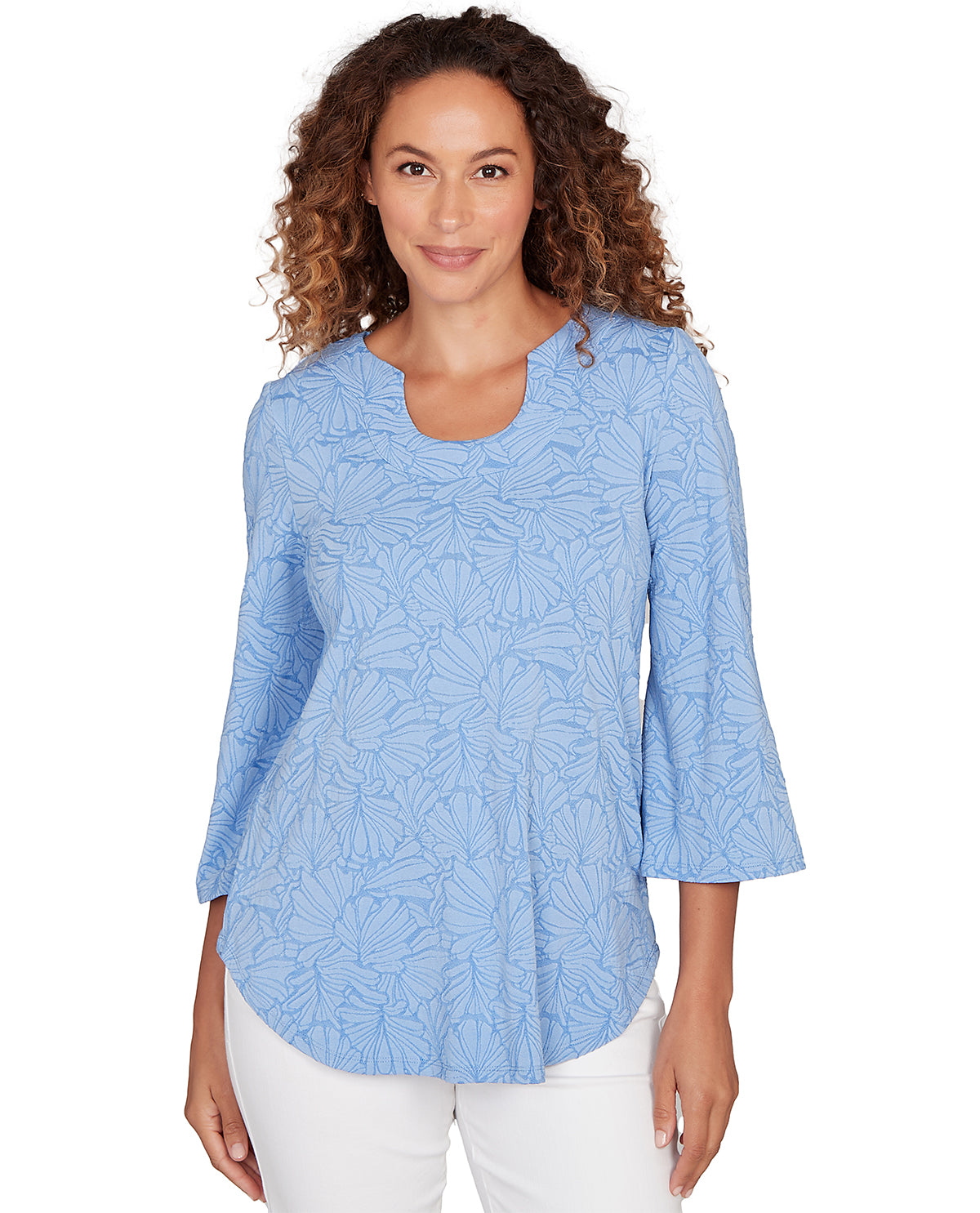 Embrace your inner dreamer with this charming 3/4 floral knit top from Ruby Road. Featuring a delicate floral pattern that brings springtime vibes year-round, this pairs effortlessly with your favorite jeans or trousers. The three-quarter sleeves offer the perfect balance of coverage and style, while the soft knit fabric keeps you comfortable all day long. Whether you're heading to brunch or a casual gathering, this top adds a touch of whimsy to any outfit.