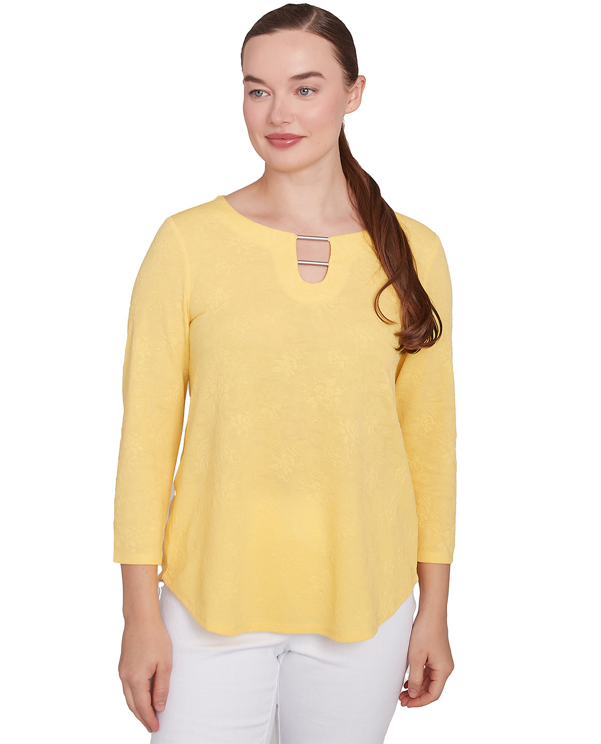 Ruby Road Missy Monochrome Moment Solid Paisley Knit Top with Bar