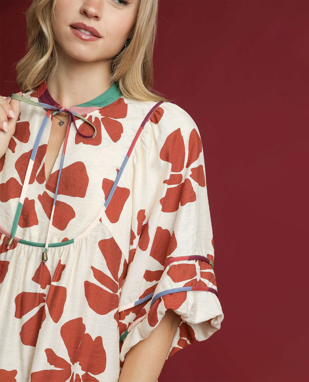 Brighten your wardrobe with the Two Tone Floral Tie Neck Babydoll Dress. Featuring a lively mix of colors and a charming floral print, this dress pairs a playful tie neck with a breezy babydoll fit for effortless movement. It's perfect for adding a fun, flirty vibe to any occasion.