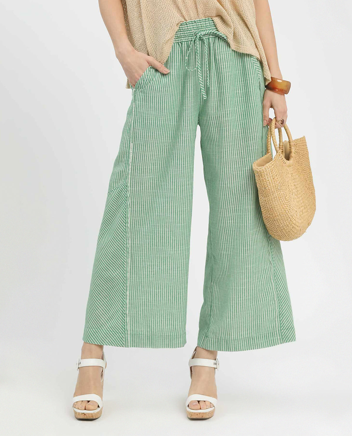 Umgee Washed Stripe Wide Leg Pant