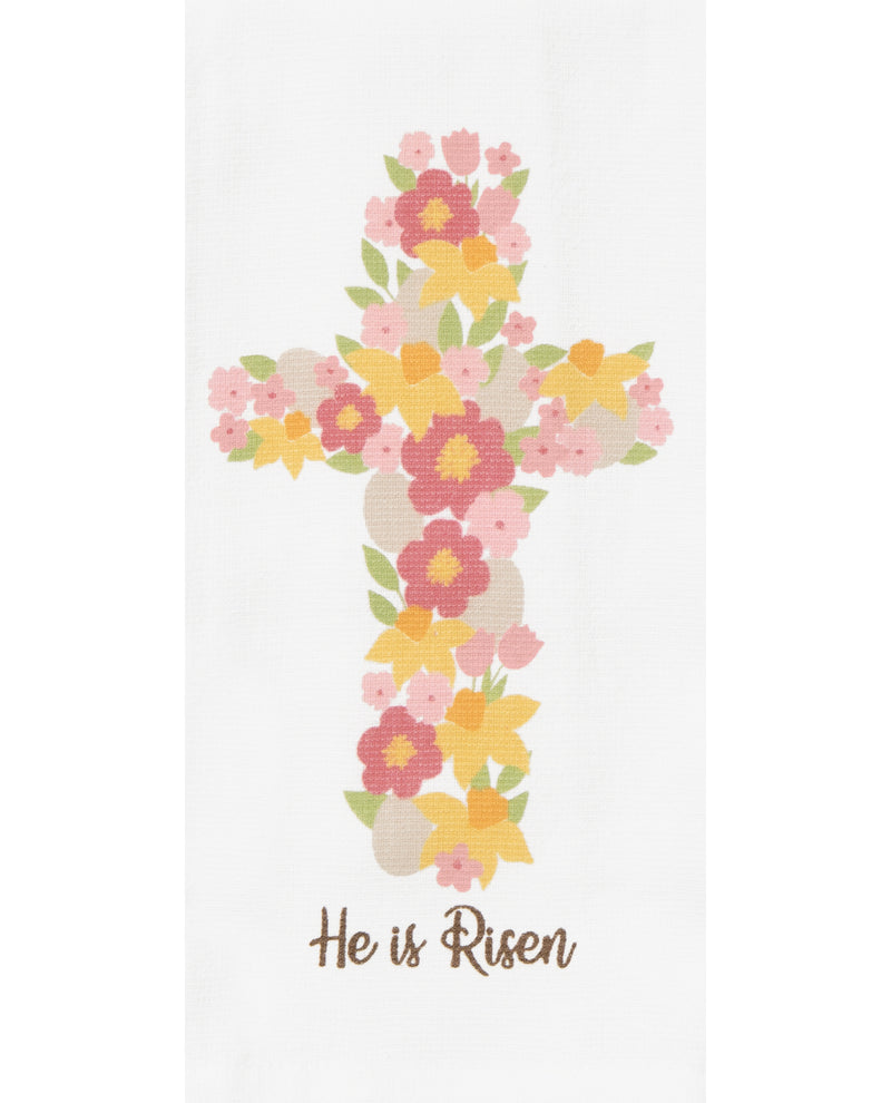 "He Is Risen" Floral Cross Kitchen Towel