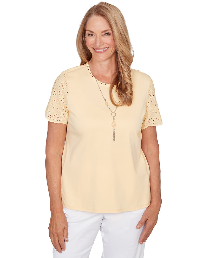 Alfred Dunner Missy Pastel Story Solid Eyelet Top