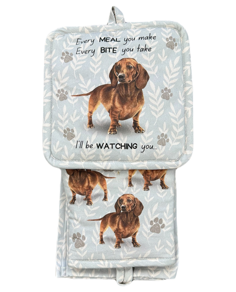 Red Dachshund Oven Mitt Set