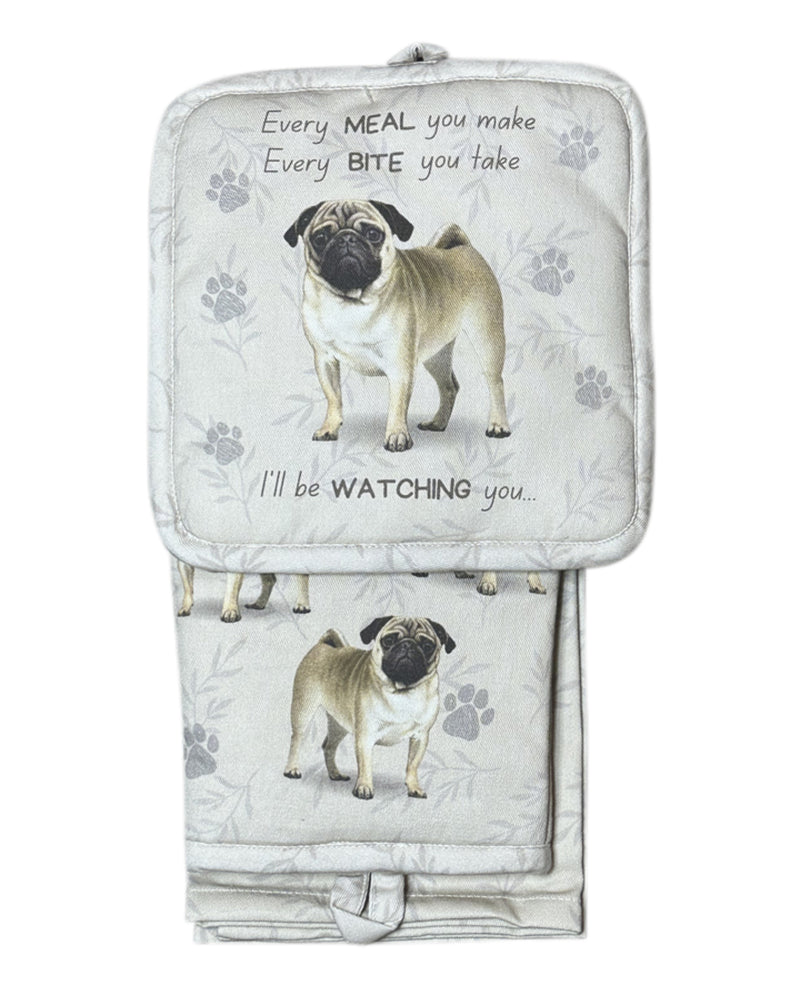 Pug Oven Mitt Set