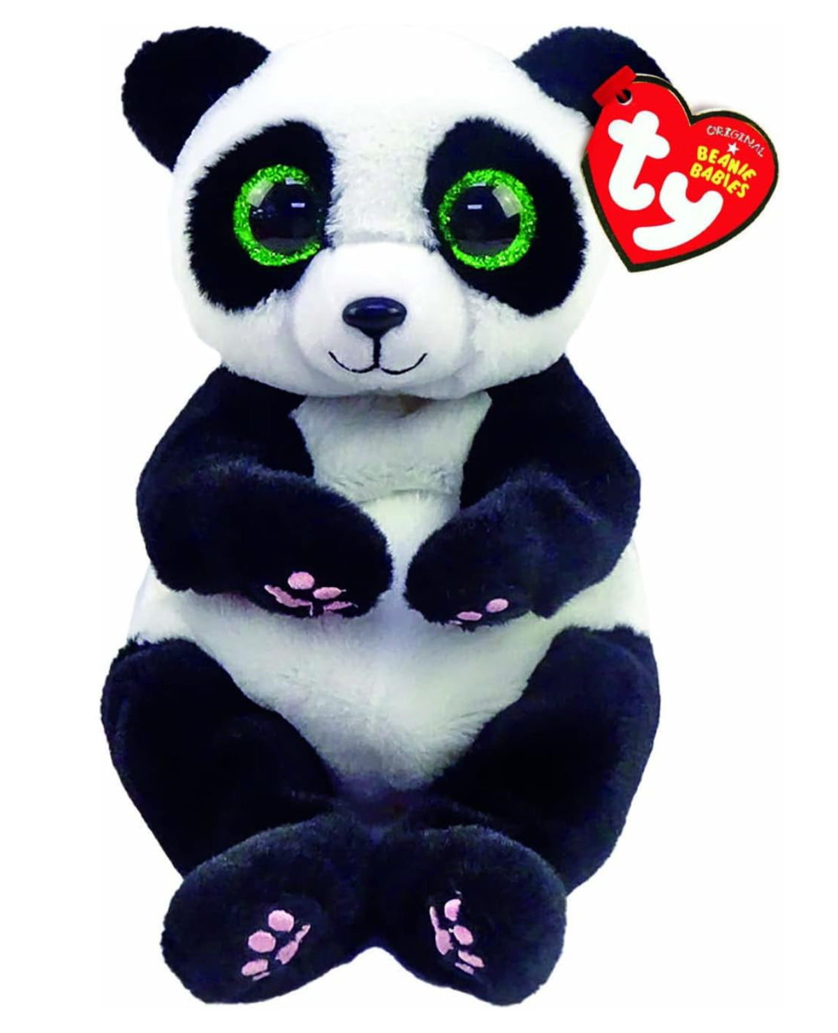 Meet Ying, an adorable TY Beanie Baby panda standing 15 centimeters tall. This cute stuffed animal features soft black and white fur and striking green glittery eyes that bring personality to life. Perfect for collectors and animal lovers alike, Ying makes a wonderful companion or gift. Celebrate Ying's birthday on March 11th with this charming plush friend.