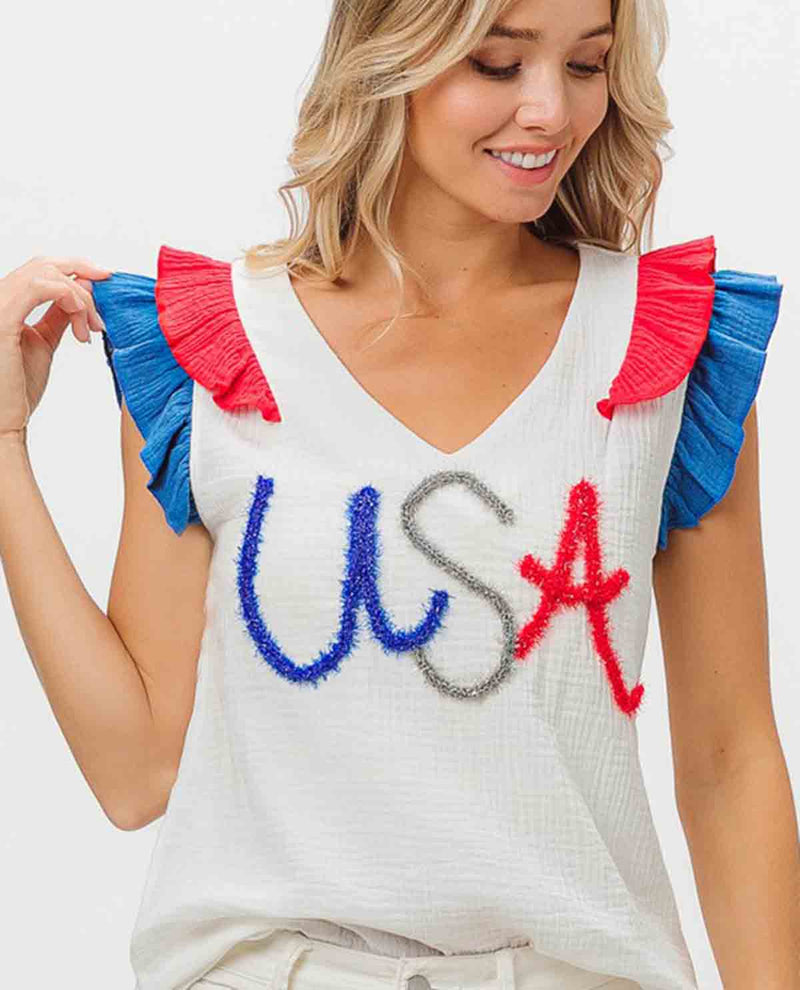 Jodifl Flutter Sleeve Top With Solid Trim Mint