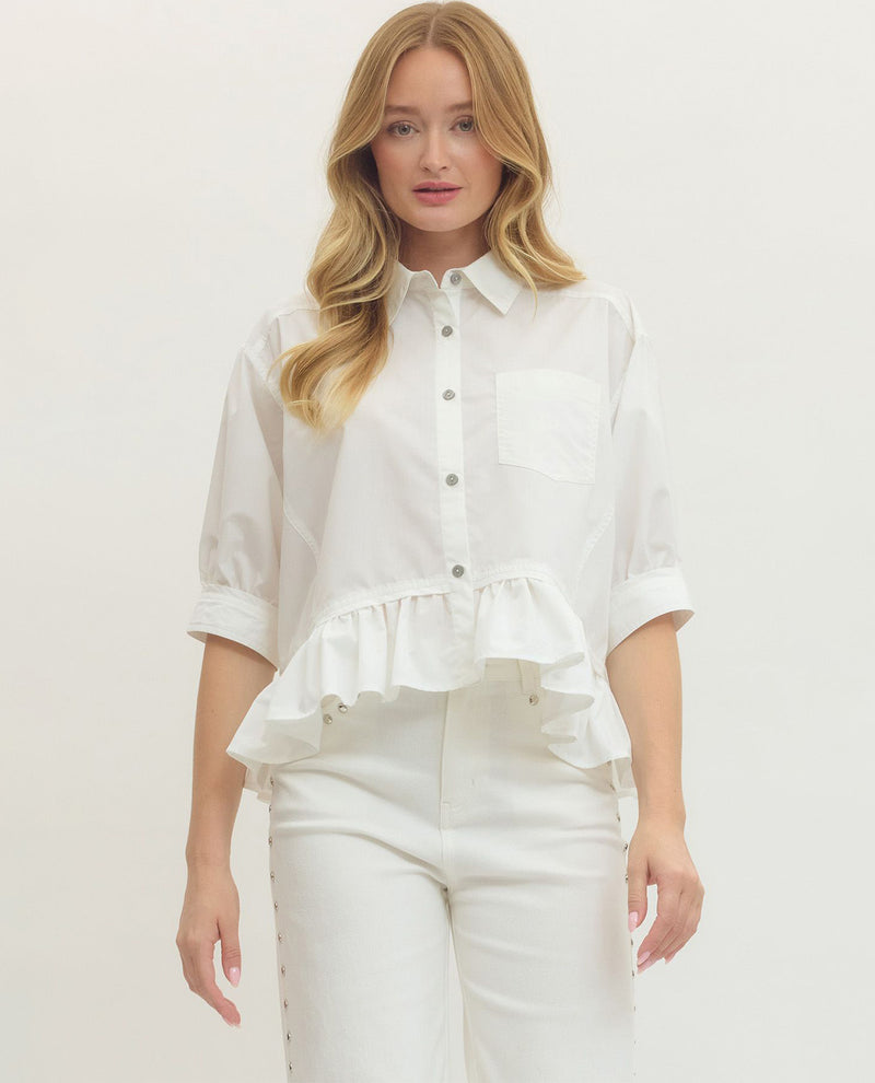 Entro Animal Print Top with Solid Trim and Cuff Sleeves
