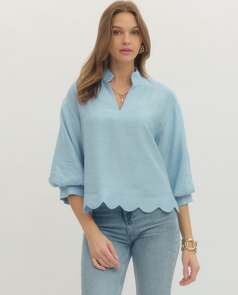 Ruby Road Cal Dreaming 3/4 Sleeve Floral Print Top Lt Blue