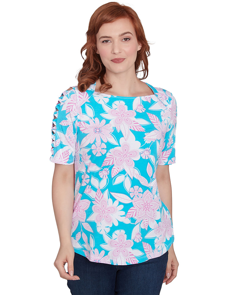 Ruby Road Petite Paradise Cove Floral Knit Top