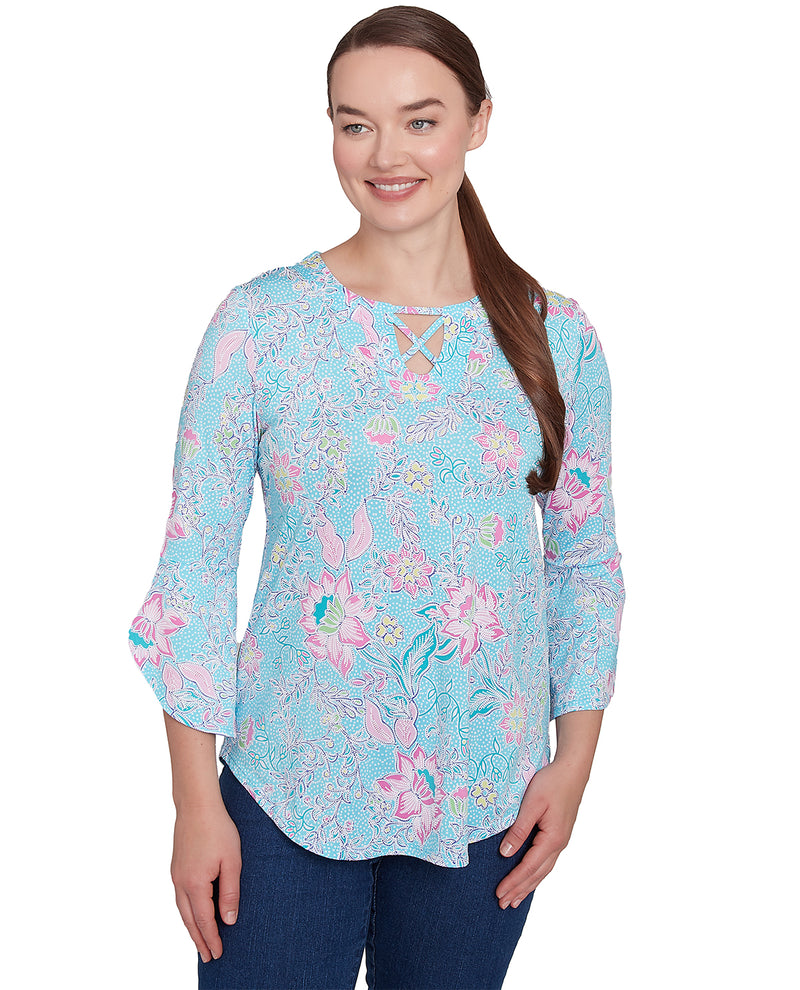 Ruby Road Missy Spring Oasis Woven Floral Top