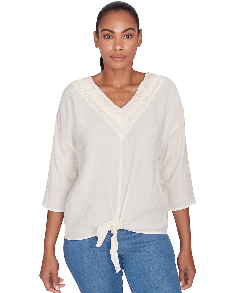 Ruby Road Keep It Natural Embellished Voile Woven Top