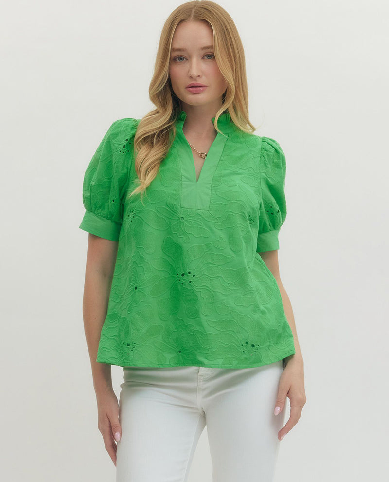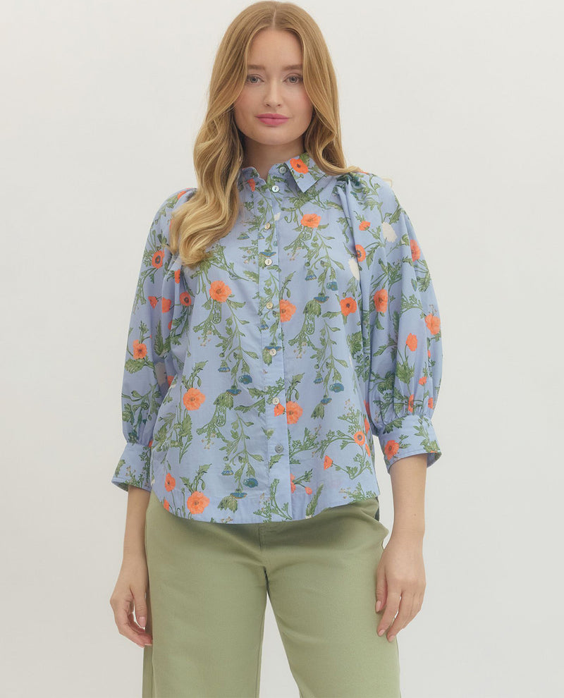 Entro Animal Print Top with Solid Trim and Cuff Sleeves