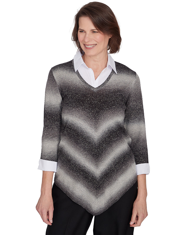 Alfred Dunner Petite Classic Ombre Geometric Sweater